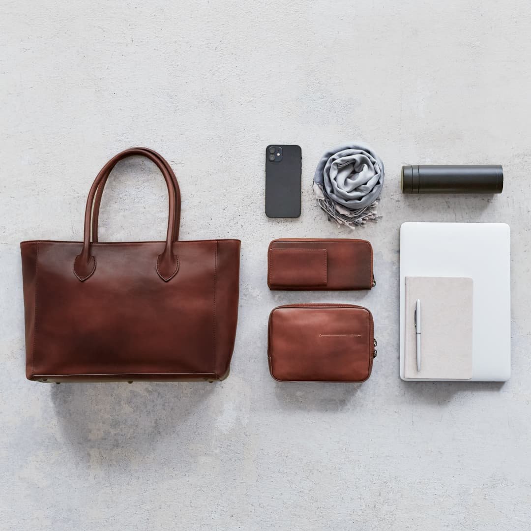 The Antique Box Tote is recommended for those who want to keep the items they use to a minimum for commuting. but have many bulky items that require gussets. It is a simple box-shaped tote. but you can enjoy its unique design with antique leather that has attractive shades.