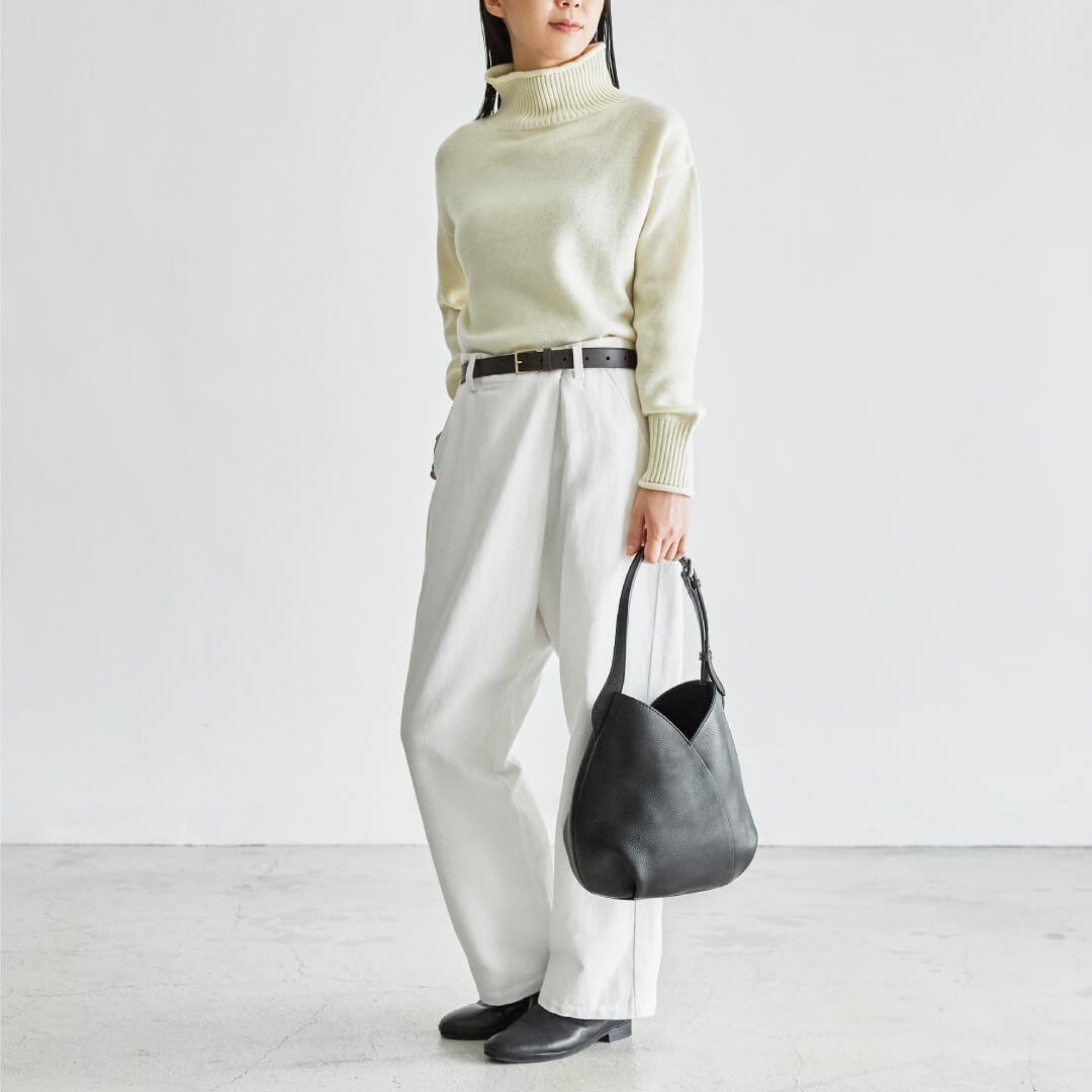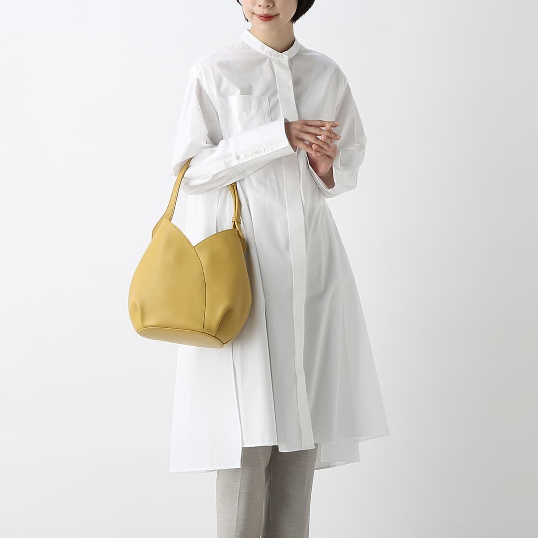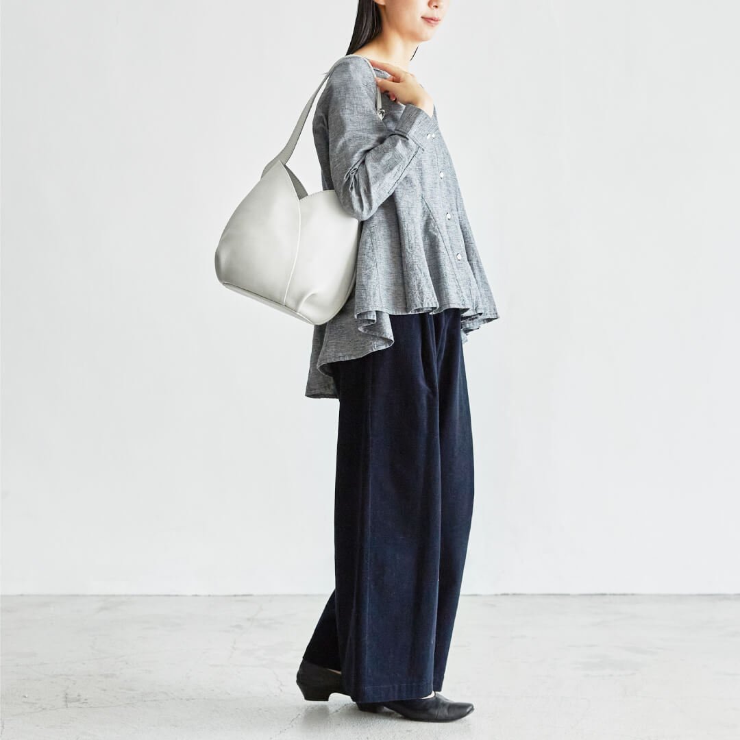 Our ‘Refined Milling Leather’ is characterized by its supple thickness and the beauty of its delicate grain. The simple form of this bag and grainy grains create individual differences unique to genuine leather.