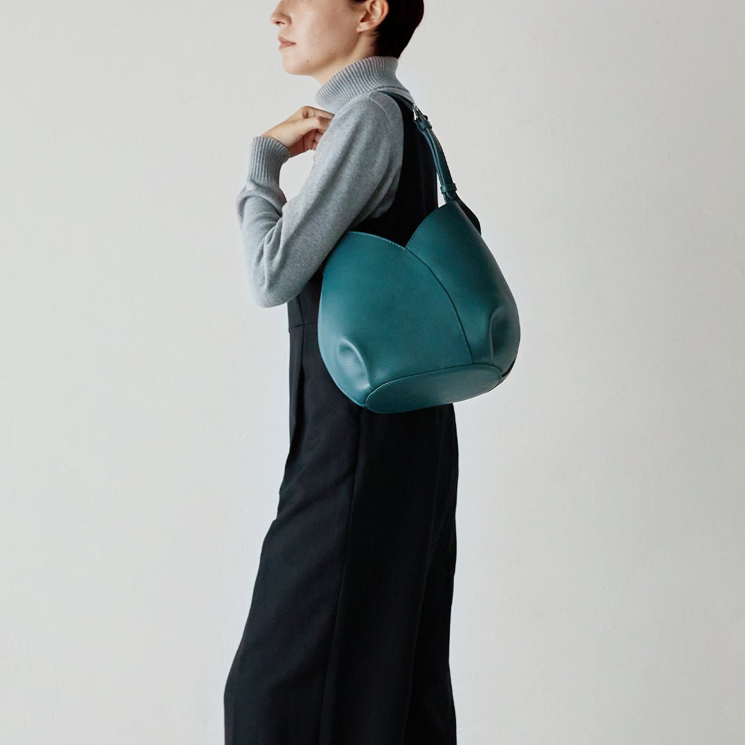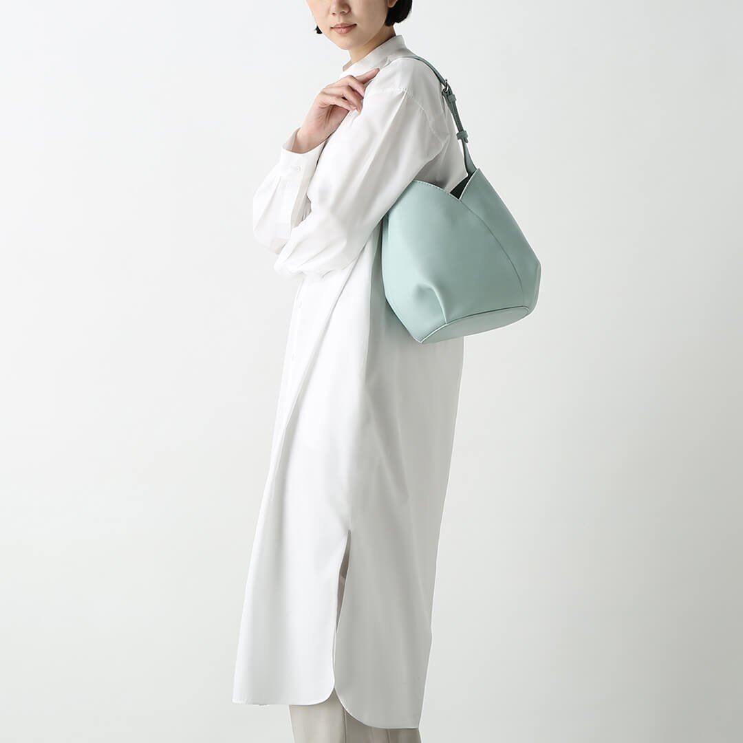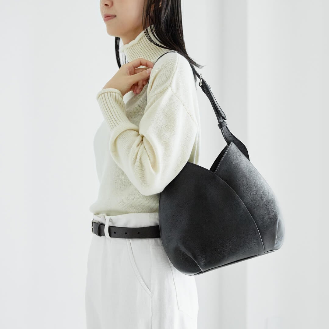A three-dimensional form and handle inspired by the Japanese Mizubasho. It brings a graceful appearance and elegant impression to those who carry it.