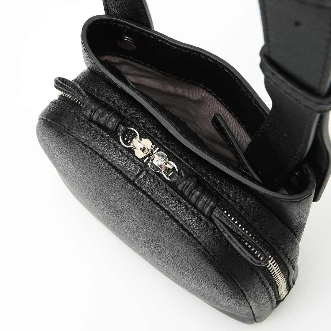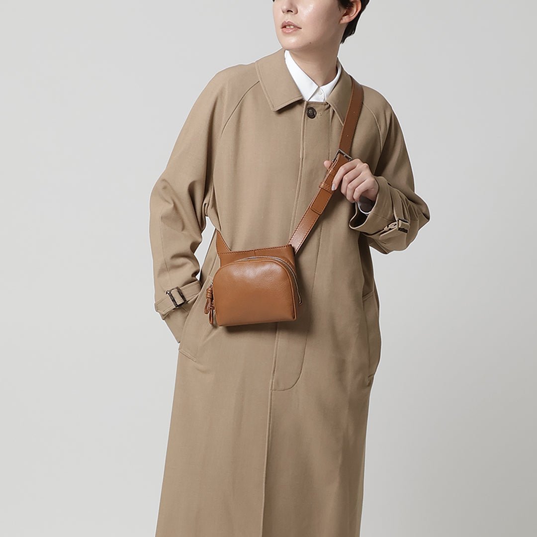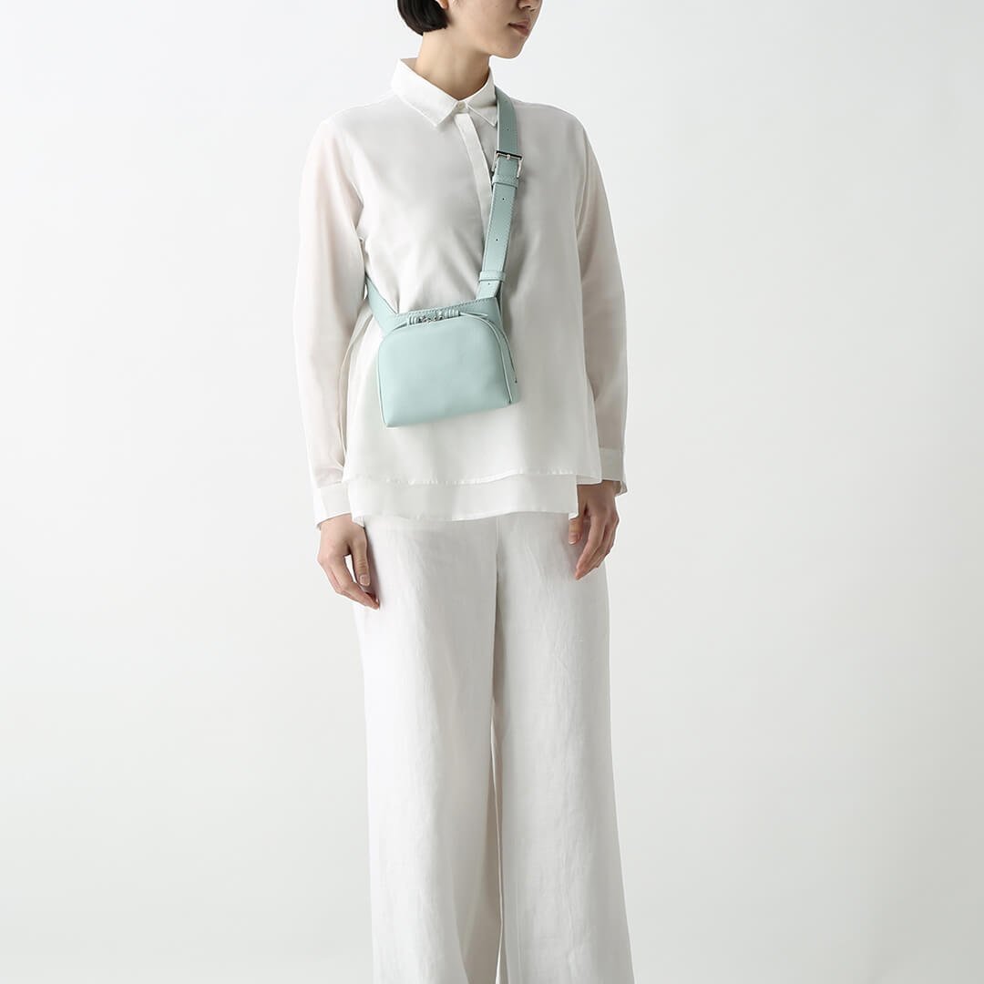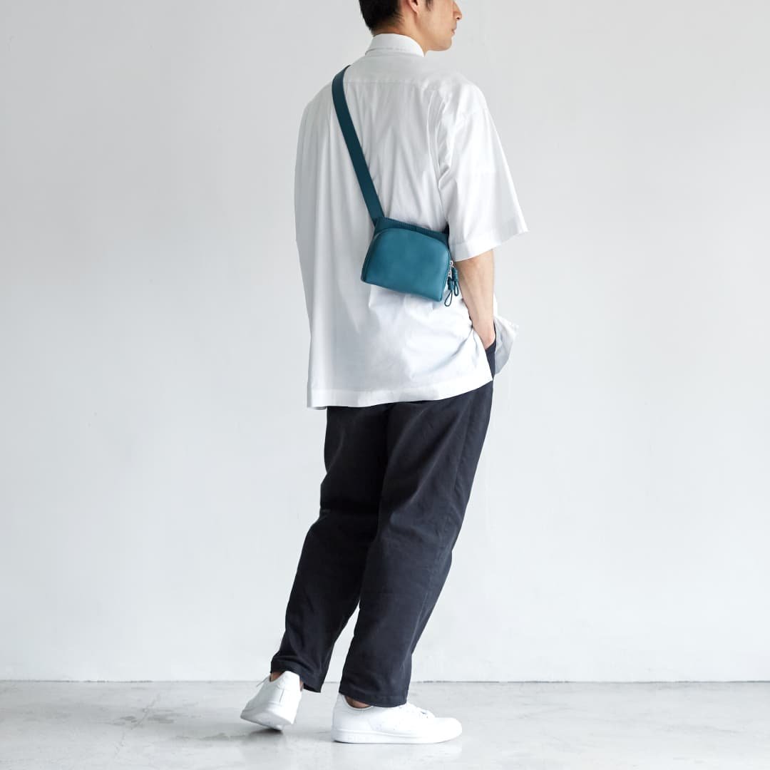 Sora has a unique shape that combines a circle and a square. It has an open pocket that you can quickly access like a pocket on your clothes. and it is a 2-way bag that can be used as a shoulder bag or a waist Pouch. The shoulder strap is designed to move freely. so you can use it according to your own style. The small S size has a compact design that fits in with any style.